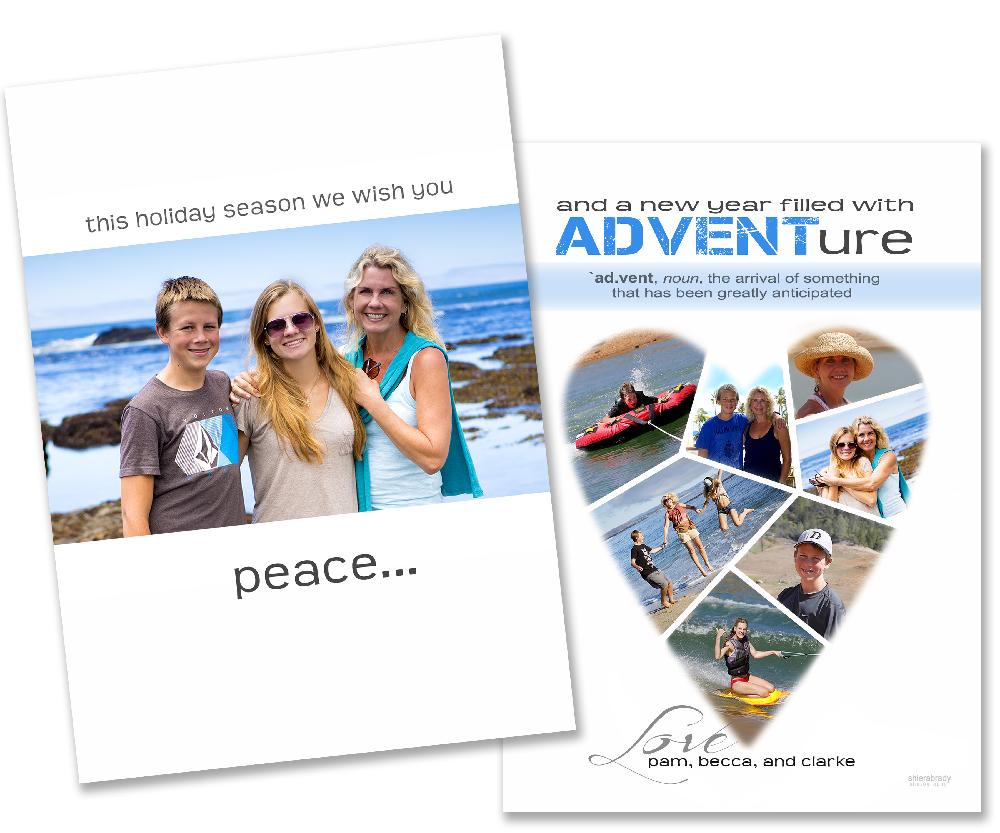 Description:   This is a sample holiday card--designs are available in a 4x8 or 5x7 size and come in a flat, folded, or tri-fold style, either in a vertical or horizontal orientation. All cards are customized to reflect your desired layout, colors, text, fonts, graphics, etc. For example, the background color of the card may be matched specifically to that of your clothing in the photo.